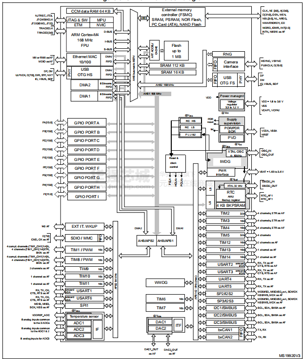 備份SRAM,以及連接到兩個的各種增強型I / O和外設(shè)