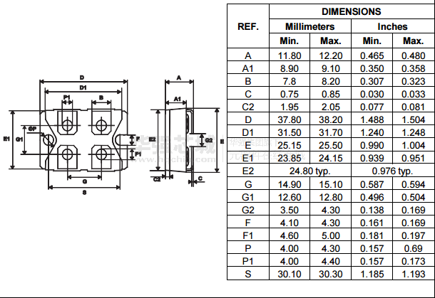適用于開(kāi)關(guān)電源和高頻直流-直流轉(zhuǎn)換器的雙功率肖特基整流器。
