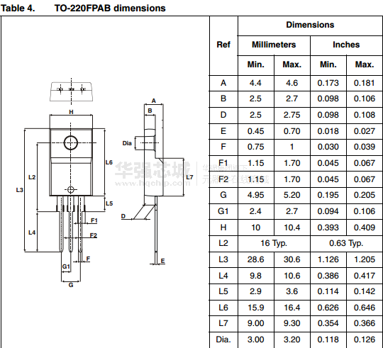 絕緣包裝:TO - 220FPAB絕緣電壓= 2000 V直流電容為12 pF