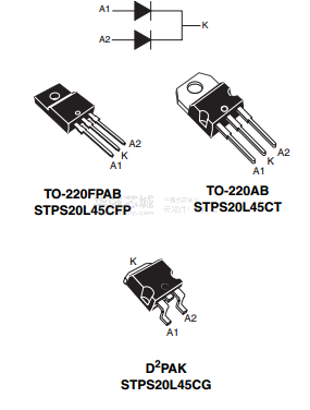 高頻開關(guān)電源和直流-直流轉(zhuǎn)換器的雙中心抽頭肖特基整流器。