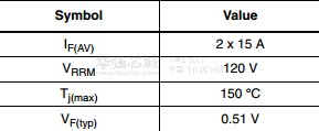 該雙中心抽頭肖特基整流器適用于高頻開關(guān)電源。