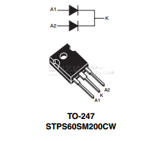 The STPS60SM200C is a dual Schottky rectifier suited for high frequency switched-mode power supply.