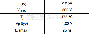 stth10lcd06c采用ST Turbo2超技術。該裝置特別適合于開關電源與交錯PFC工作。