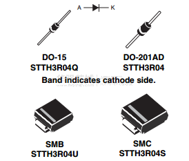 The STTH3R04 series uses ST's new 400 V planar Pt doping technology. The STTH3R04 is specially suited for switching mode base drive and transistor circuits.