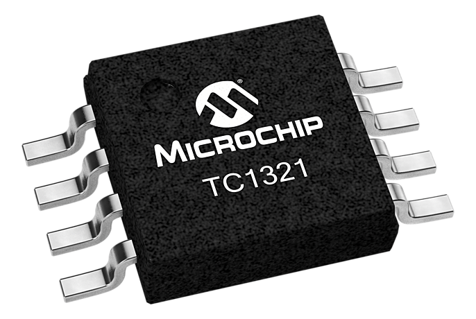 The TC1321 is a serially accessible 10-bit voltage output digital-to-analog converter (DAC). The DAC produces an output voltage that ranges from ground to an externally supplied reference voltage. It operates from a single power supply that can range from 2.7V to 5.5V, making it ideal for a wide range of applications. Built into the part is a power-on reset function that ensures that the device starts at a known condition. Communication with the TC1321 is accomplished via a simple 2-wire SMBus/I2C? compatible serial port with the TC1321 acting as a slave only device. The host can enable the SHDN bit in the CONFIG register to activate the low-power standby mode.