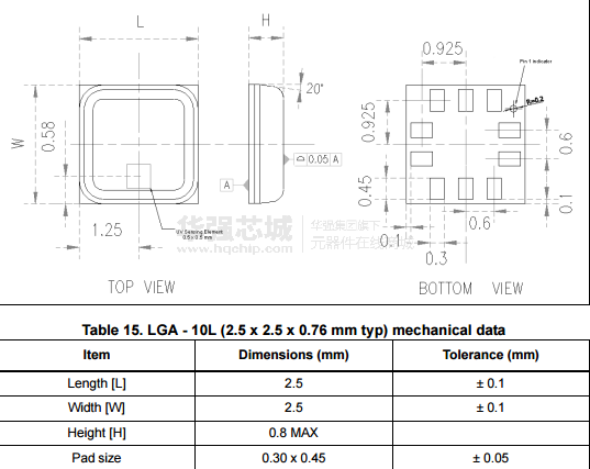 在一個完整的uvis25模具LGA封裝是可用的(LGA)。它是保證工作在溫度范圍從- 20°C延伸至85°C的封裝是透明的,以允許外部的太陽輻射到達(dá)傳感元件。