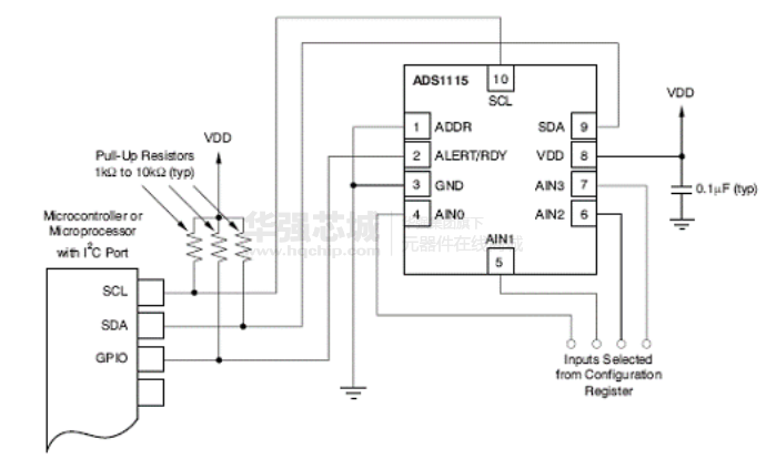 ADS1113、ADS1114 和 ADS1115 是具有 16 位分辨率的高精度模數(shù)轉(zhuǎn)換器 (ADC),采用超小型的無引線 QFN-10 封裝或 MSOP-10 封裝。 ADS1113 / 4 / 5 在設(shè)計(jì)時(shí)考慮到了精度、功耗和實(shí)現(xiàn)的簡易性。 ADS1113 / 4 / 5 具有一個(gè)板上基準(zhǔn)和振蕩器。 數(shù)據(jù)通過一個(gè) I2C 兼容型串行接口進(jìn)行傳輸;可以選擇 4 個(gè) I2C 從地址。 ADS1113 / 4 / 5 采用 2.0V 至 5.5V 的單工作電源。 ADS1113 / 4 / 5 能夠以高達(dá)每秒 860 個(gè)采樣數(shù)據(jù) (SPS) 的速率執(zhí)行轉(zhuǎn)換操作。 ADS1114 和 ADS1115 具有一個(gè)板上可編程增益放大器 (PGA),該 PGA 可提供從電源電壓到低至 ±256mV 的輸入范圍,因而使得能夠以高分辨率來測量大信號(hào)和小信號(hào)。 另外,ADS1115 還具有一個(gè)輸入多路復(fù)用器 (MUX),可提供 2 個(gè)差分輸入或 4 個(gè)單端輸入。 ADS1113 / 4 / 5 可工作于連續(xù)轉(zhuǎn)換模式或單觸發(fā)模式,后者在一個(gè)轉(zhuǎn)換完成之后將自動(dòng)斷電,從而極大地降低了空閑狀態(tài)下的電流消耗。 ADS1113 / 4 / 5 具有-40℃ 至 +125℃ 的規(guī)定溫度范圍。特性超小型 QFN 封裝:2mm x 1.5mm x 0.4mm 寬電源范圍: 2.0V 至 5.5V 低電流消耗:連續(xù)模式: 僅 150μA單觸發(fā)模式: 自動(dòng)關(guān)斷 可編程數(shù)據(jù)速率:8SPS 至 860SPS 內(nèi)部低漂移電壓基準(zhǔn) 內(nèi)部振蕩器 內(nèi)部可編程增益放大器 (PGA) I2C 接口: 引腳可選地址 4 個(gè)單端或 2 個(gè)差分輸入 (ADS1115) 可編程比較器(ADS1114 和 ADS1115)應(yīng)用便攜式儀表 消費(fèi)類商品 電池監(jiān)測 溫度測量 工廠自動(dòng)化及過程控制 All trademarks are the property of their respective owners