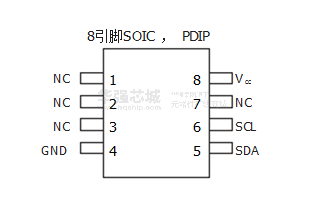 相同的引腳排列為兩線制串行EEPROM