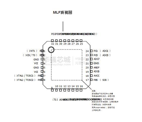 - 28引腳PDIP , 32引腳TQFP封裝,以及32片QFN / MLF