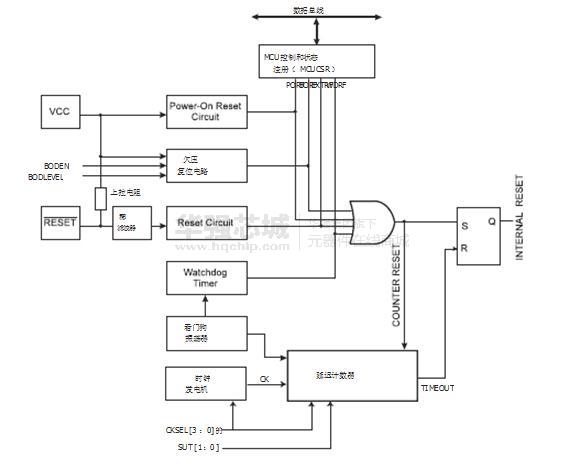 - 五種休眠模式:空閑模式, ADC噪聲抑制,省電,掉電,和待機(jī)