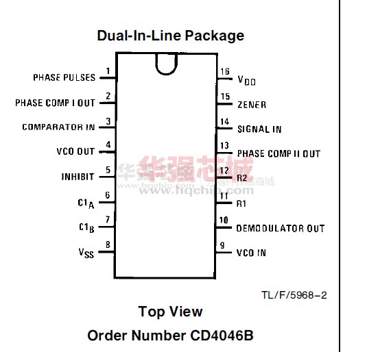 CD4046的引腳排列,采用16腳雙列直插式,各管腳功能: