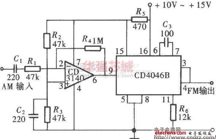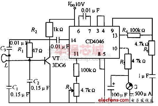 用CD4046組成的調(diào)頻信號(hào)發(fā)生器