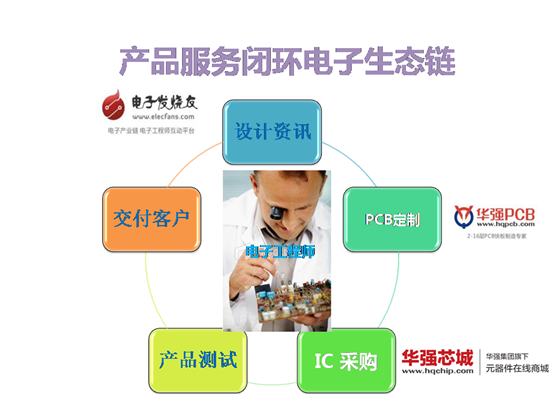 在前面,我們已經(jīng)提到華強(qiáng)聚豐旗下?lián)碛辛穗娮用襟w、PCB制造和元器件分銷等眾多平臺,這基本就已經(jīng)覆蓋了電子從設(shè)計到生產(chǎn)的各個重要環(huán)節(jié),我們來看一下這種產(chǎn)業(yè)鏈閉環(huán)是如何幫助我們的客戶: