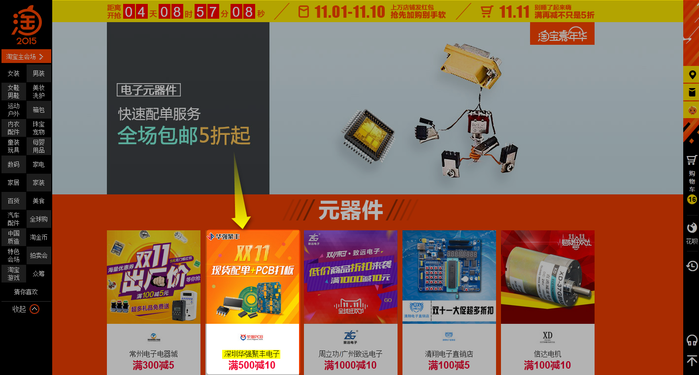 2015年,華強(qiáng)芯城與淘寶官方合作,推出雙十一淘寶特別活動(dòng),在開辟新的業(yè)務(wù)的同時(shí),也開啟元器件行業(yè)與淘寶官方合作的首例。