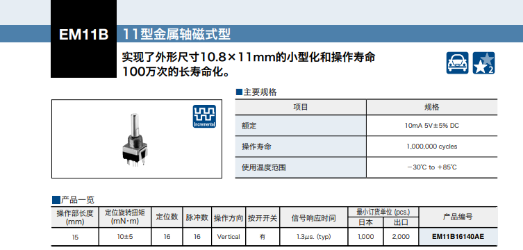 近期,全球知名的電子零組件大廠 阿爾卑斯阿爾派(ALPSALPINE)更新了其EM11B系列磁式編碼器的生產(chǎn)計(jì)劃,增產(chǎn)至10萬件/月。